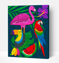 Kūrybinis modelino paveikslas „Tropikai“ 30x40 cm – stilingas būdas papuošti namus ir lavinti kūrybiškumą. Modelinas lipdomas tiesiai ant drobės, kurią iškart galima kabinti ant sienos.
