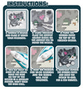 Naudojimas: pasirinkite dizainą, dėliokite karoliukus su pincetu, uždenkite lyginimo popieriumi ir, padedant suaugusiajam, vidutine šiluma lyginkite 10–30 s sukamuoju judesiu, nepaliekant lygintuvo vienoje vietoje. Nuimkite popierių ir leiskite kūriniui atvėsti.