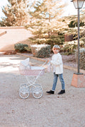 Elegantiškas lėlių vežimėlis kasdieniams žaidimams ir vaidmenų veikloms. Tvirtas metalinis rėmas užtikrina patikimumą, o lopšys su nusegamu užklotu leidžia patogiai migdyti lėlytę. Reguliuojamas stogelis apsaugo nuo šviesos, tyliai riedantys minkšto poliuretano ratukai suteikia komfortą namuose ir lauke. Sulankstomas mechanizmas padeda lengvai transportuoti ir laikyti, o apačioje esanti tinklinė lentynėlė skirta lėlytės daiktams. Pridedama rankinė, kabinama ant rankenos. Tinka daugumai lėlių – vežimėlis pritaikytas lėlytėms iki 56 cm.