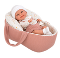 Arias realistiška lėlytė kūdikis su čiulptuku ir nešykle, mergaitė 33 cm