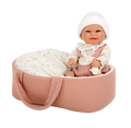 Realistiškas kūdikėlis, sukurtas kasdieniams vaidmenų žaidimams ir rūpestingumo ugdymui. Ši žaislinė lėlė mergaitė su išraiškingomis akimis aprengta derančiais rausvais ir baltais drabužėliais, guli rausvoje nešyklėje ir turi čiulptuką. Lankstomos rankos ir kojos leidžia lengvai sodinti, statyti ir keisti pozas, todėl lėlytę patogu aprengti ir integruoti į įvairius žaidimus.
