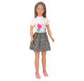 Didelė realistiška lėlė su pieštomis, išraiškingomis akimis ir ilgais, šviesiais plaukais, kuriuos galima šukuoti ir plauti. Aprengta šiuolaikiškais laisvalaikio drabužiais, tinkama kasdieniams žaidimams ir smulkiosios motorikos lavinimui. Puikus pasirinkimas ieškantiems 105 cm vinilo lėlės mergaitės su natūralistinėmis detalėmis ir CE sertifikatu.
