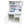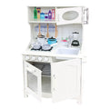 BINO balta medinė virtuvėlė vaikams su priedais – orkaitė, kriauklė, mikrobangė