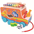 Bino lavinamasis medinis traukiamas automobilis su gyvūnais, formelių rūšiuokliu ir metalofonu, 18+ mėn.