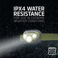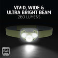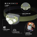 • Veikimo laikas: apie 4 val. esant 260 liumenų režimui ir iki 35 val. esant 45 liumenų režimui, todėl LED galvos žibintas tinka ilgesniam naudojimui.