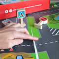IGROTECO medinis kelio ženklų mokomasis rinkinys 18 det. su keliais, lipdukais ir automobiliais 3+