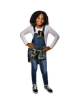 Lėlytė vilki geltonus marškinėlius „Kids Voices Matter“, žalią švarkelį su „Stand up“ emblema, šortus, sportinius batelius, turi karūnėlę, apyrankes, piketo plakatą ir megafoną.