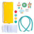 Komplekte: 2 reguliuojamos arkos (ø3 x 150 cm), 4 aplink kilimėlį tvirtinami pripučiami ritinėliai, 4 kamuoliukai ir 7 jutiminiai žaisliukai (3 pakabinami, 2 prilipinami, 2 pritvirtinti prie ritinėlių). Rekomenduojamas amžius: 0 mėn.+ Kilimėlio dydis: 110 x 110 x 49 cm. Pakuotė: 55 x 47 x 11 cm.