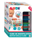Sutalpinkite kamuoliukus į LUDI manipuliacinį rūšiavimo kubą su elastingomis juostelėmis – jos sukuria smagų iššūkį mažoms rankytėms.
