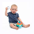 Besisupanti bazė suteikia žaidimui dinamikos, o spalvoti žiedai skleidžia malonius garsus, skatinančius smalsumą ir dėmesį.