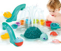 Rinkinyje yra vėžlys–fontanas: panardintas jis šviečia ir purškia vandenį per nugarėlę (reikia 3 x 1.5V LR03/AAA baterijų, nepridedamos). Dvi čiuožyklėlės su siurbtukais tvirtinamos prie sienos ar vonios krašto, o trys jūros gyvūnėlių formos kamuoliukai smagiai leidžiasi jomis žemyn.