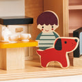 Mentari medinė lėlių šeima su šuniuku – 5 kaučiukmedžio figūrėlės, 12+ mėn.