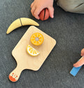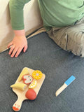 Mentari medinis vaisių pjaustymo rinkinys – lentelė, peiliukas ir 3 Velcro vaisiai, 24+ mėn.