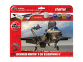 Plastikinis surenkamas modelis 1/72 mastelio pradedantiesiems – Lockheed Martin F-35B Lightning II dovanų komplektas iš Airfix (A55010). Komplekte: detalės, lipdukai su surinkimo instrukcija, klijai, teptukas ir akriliniai dažai. Modelio ilgis 21,8 cm. Pagaminta Didžiojoje Britanijoje.