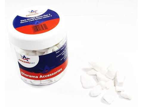 Skalūno akmens frakcija „Slate Marble“, dydis 2, 250 g (kodas 19311). Įvairių formų ir dydžių akmenukai skirti maketų, dioramų bei įvairių mastelių figūrų stovų konstravimui. Tinka reljefo modeliavimui, pagrindų tekstūravimui ir realistiniams scenos akcentams kurti.