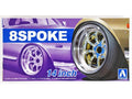 8 stipinų 14 colių ratų komplektas (8 Spoke); gamintojas Aoshima; prekės kodas 05376. Komplekto ratai ir ratlankiai skirti tiksliai išvaizdai bei detalizacijai.