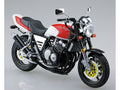 Plastikinis surenkamas motociklo modelis su papildomomis detalėmis (custom parts), mastelis 1/12. Atkuria Honda NC31 CB400 Super Four (1992). Gamintojas Aoshima, rinkinio kodas 06479. Pagaminta Japonijoje.