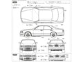 Plastikinis 1/24 mastelio surenkamas automobilio rinkinys, skirtas Nissan Y33 Cedric/Gloria Gran Turismo Ultima ’95; gamintojas Aoshima, kodas 06174.