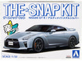 Plastikinis surenkamas automobilio modelis „Nissan R35 GT‑R“ Ultimate Metal Silver (1/32, kodas 05641) iš Aoshima „The Snap Kit“ serijos. Rinkinyje yra detalės, lipdukai ir surinkimo instrukcija. Pagaminta Japonijoje.