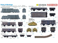 Plastikinis surenkamas modelis Dragon German Armored Locomotive with Railway Vehicle Units and Pz.IV H Medium Tank, 1/144 mastelis, kodas 14152. Vokiškas šarvuotas lokomotyvas su geležinkelio vagonais ir Pz.IV H vidutiniu tanku modeliu.