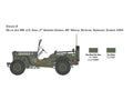 Plastikinis surenkamas modelis 1/24 masteliu, skirtas Willys Jeep MB 80th Anniversary 1941–2021. Gamintojas Italeri, kodas 3635. Modelio ilgis 13,8 cm. Pagaminta Italijoje.