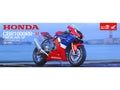 Plastikinis surenkamas 1/9 mastelio motociklo modelis, iš anksto nudažytas (Pre-Painted), tiksliai atkuriantis Honda CBR1000RR-R FireBlade SP detales.
