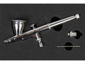 Gravitacinio padavimo aerografas Sparmax MAX-3 su 0,3 mm antgaliu, 5 cc dažų taurele ir dvigubo veikimo (dual action) trigeriu tiksliam purškimui.