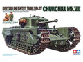Plastikinis surenkamas rinkinys 1/35 mastelio, skirtas britų pėstininkų tankui Mk.IV Churchill Mk.VII (Tamiya, kodas 35210). Pagaminta Japonijoje.