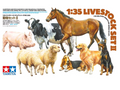 Plastikinis surenkamas gyvulių rinkinys dioramoms, mastelis 1/35. Tamiya Livestock Set II (35385) pateikiamas su detalėmis, lipdukais ir surinkimo instrukcija. Pagaminta Japonijoje.