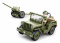 SLUBAN konstruktorius – karinis automobilis su pabūklu, 143 detalių rinkinys kūrybiškam žaidimui ir statyboms.