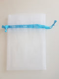 Spalvos: raudona, balta su blizgučiais, pridėtas žydras dovanų maišelis.