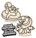 Rinkinyje: 2 medinės figūrėlės, 2 mediniai stoveliai, formavimo įrankis ir 6 spalvų modelinas. Pakuotės dydis: 23,5 x 24,5 x 4 cm.
