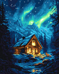 Tapyba pagal numerius leidžia atkurti jaukų kalnų namelyje užfiksuotą vakarą po šiaurės pašvaiste. Detalus piešinys su nakties dangaus žaliais, mėlynais ir violetiniais atspalviais, šiltai švytančiais langais ir ramia miško aplinka suteikia kūriniui gylio bei atmosferos. Tai kūrybiškas laisvalaikio užsiėmimas, padedantis atsipalaiduoti, lavinti dėmesio sutelkimą ir tikslumą, o baigtas paveikslas puikiai tinka namų dekorui ar dovanai.